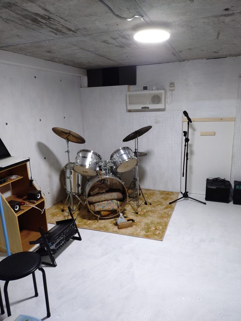 スタジオにはギターアンプ、ベースアンプ、ボーカルマイク、ドラムセット、DTM/DAW/OBS対応のPC機材一式を用意してあります。