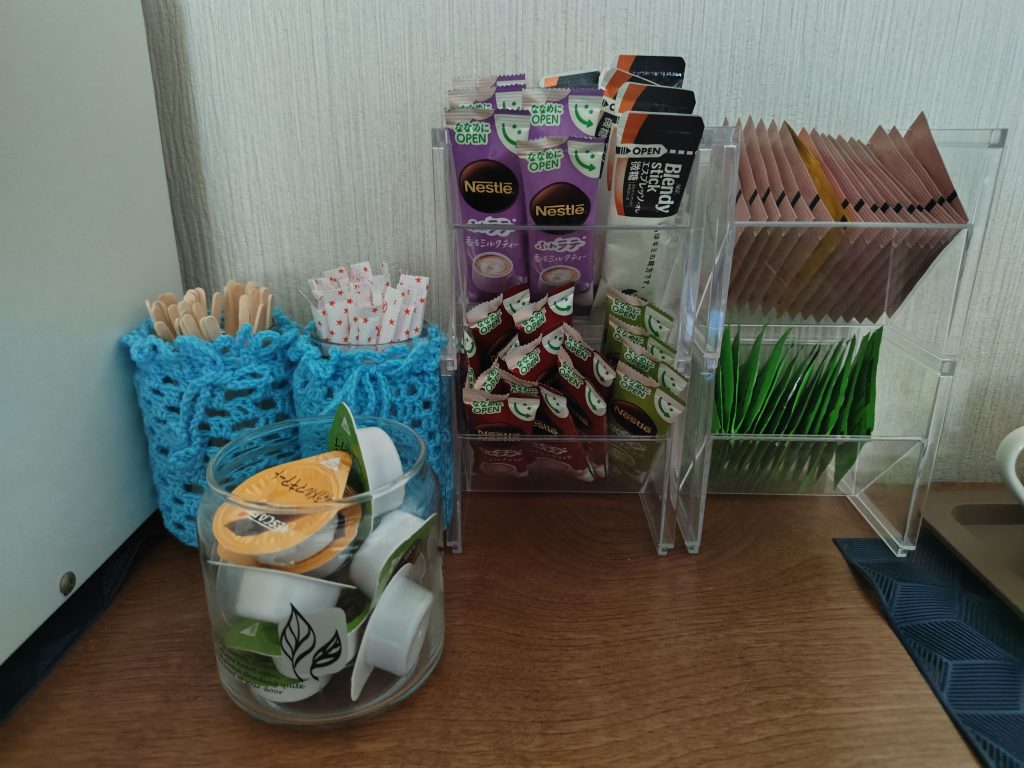 天然水、コーヒー、紅茶などを無料で提供しております。電子レンジもありますのでコンビニでお弁当を買ってきても大丈夫です。